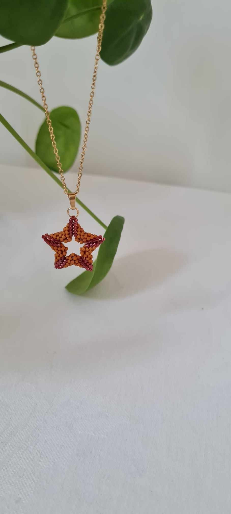 Pendentif étoile tissée en 3D tissage main de perles Miyuki délicas, monté sur chaîne en acier inoxydable. Livré dans un pochon en velours, il est possible de l'avoir dans un écrin sur demande facturé 1€.